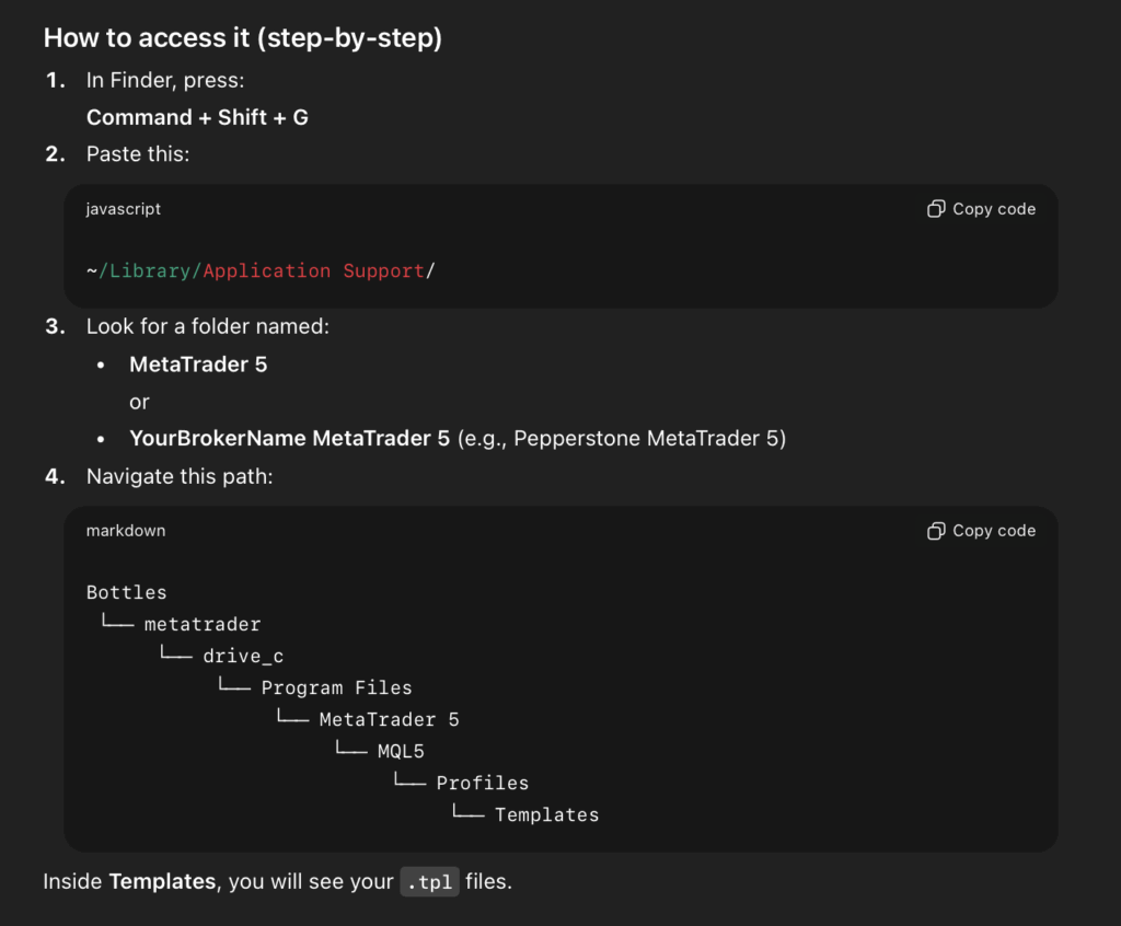 Ini kerana MT5 di dalam Macbook duduk dalam sandbox, bukan dalam hardisk secara biasa.
