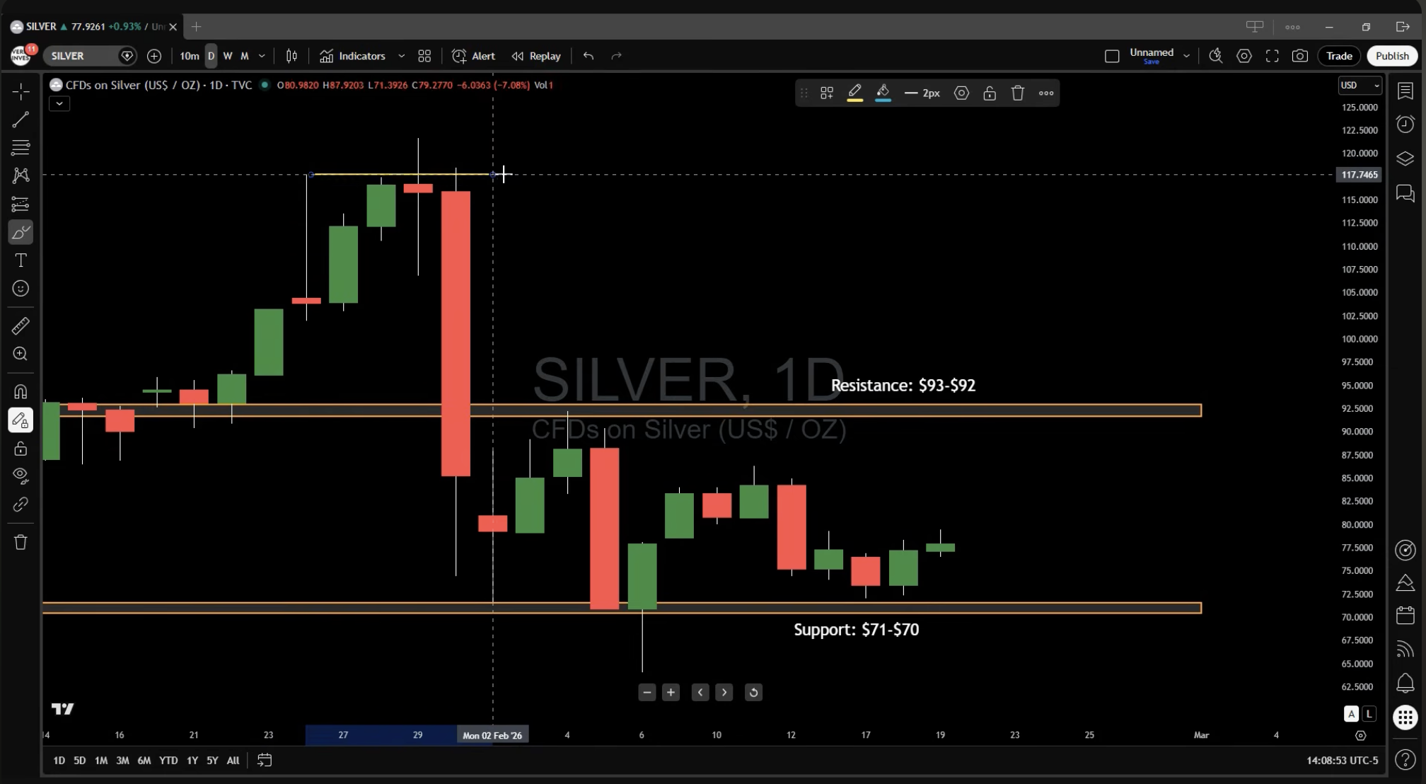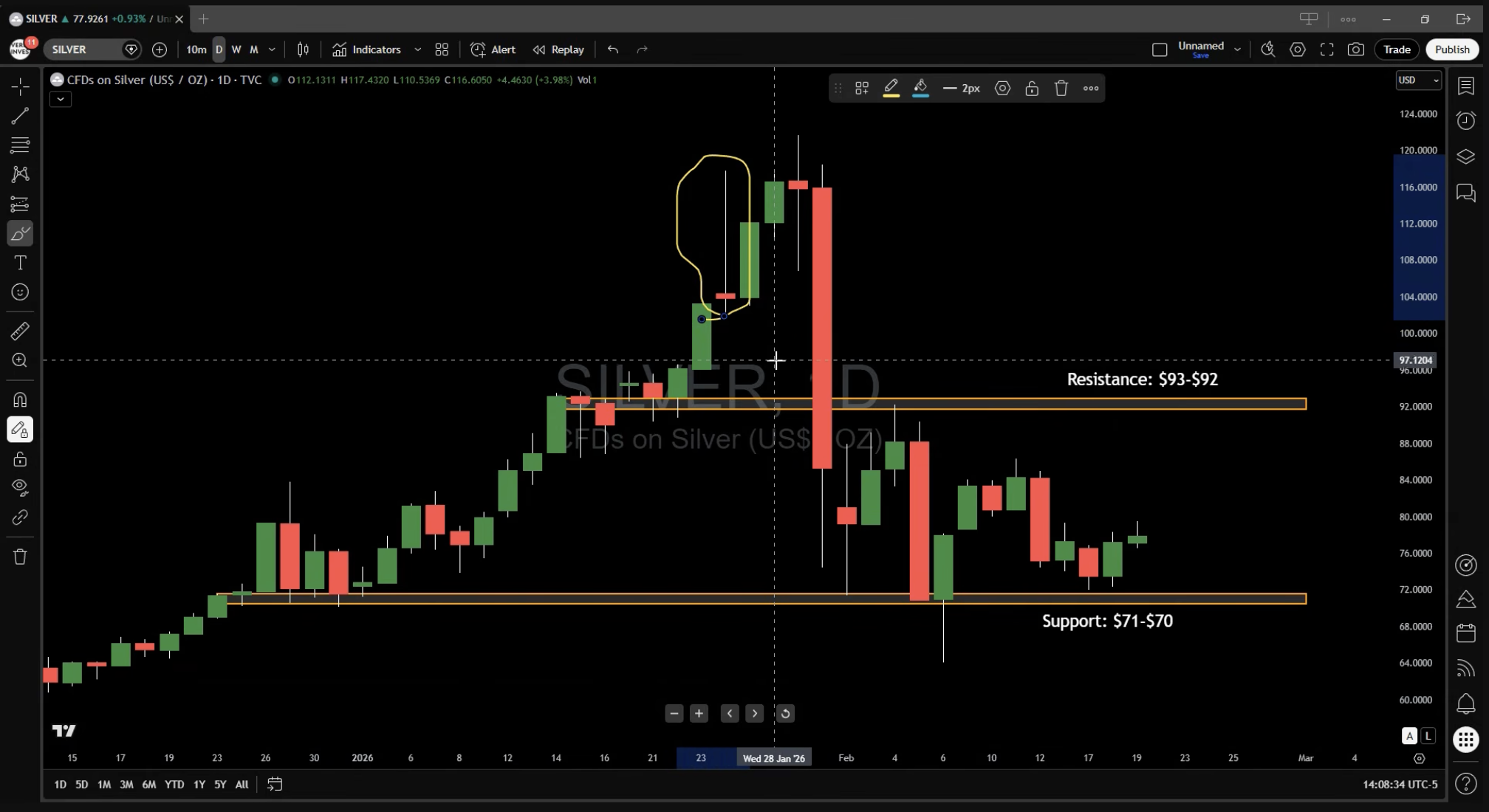 Revisi Preston, hari ini kita belajar topping tail candle. Ini chart silver sebagai rujukan.