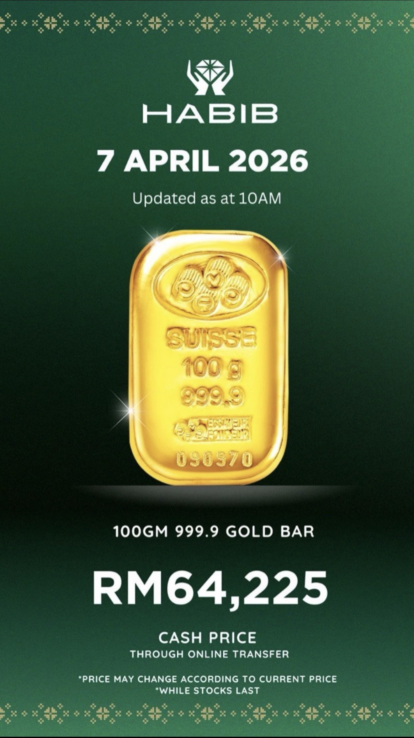 Harga gold, 7 April 2026, daripada Habib untuk jongkong seberat 100 gram adalah,