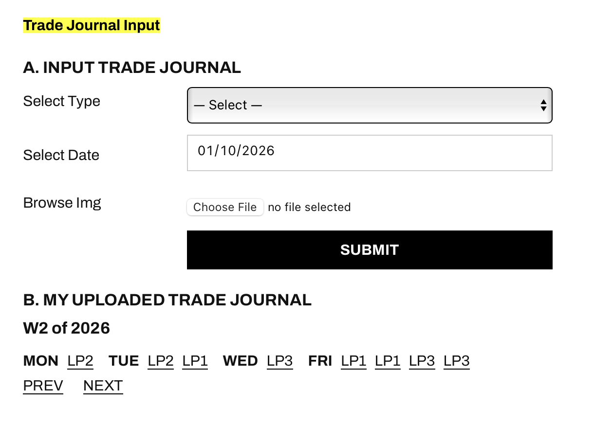 Untuk tahun 2026 ini, saya telah membuatnya dalam bentuk form, dimana semua ahli Manifest boleh turut serta, menyumbang trade journal masing-masing.